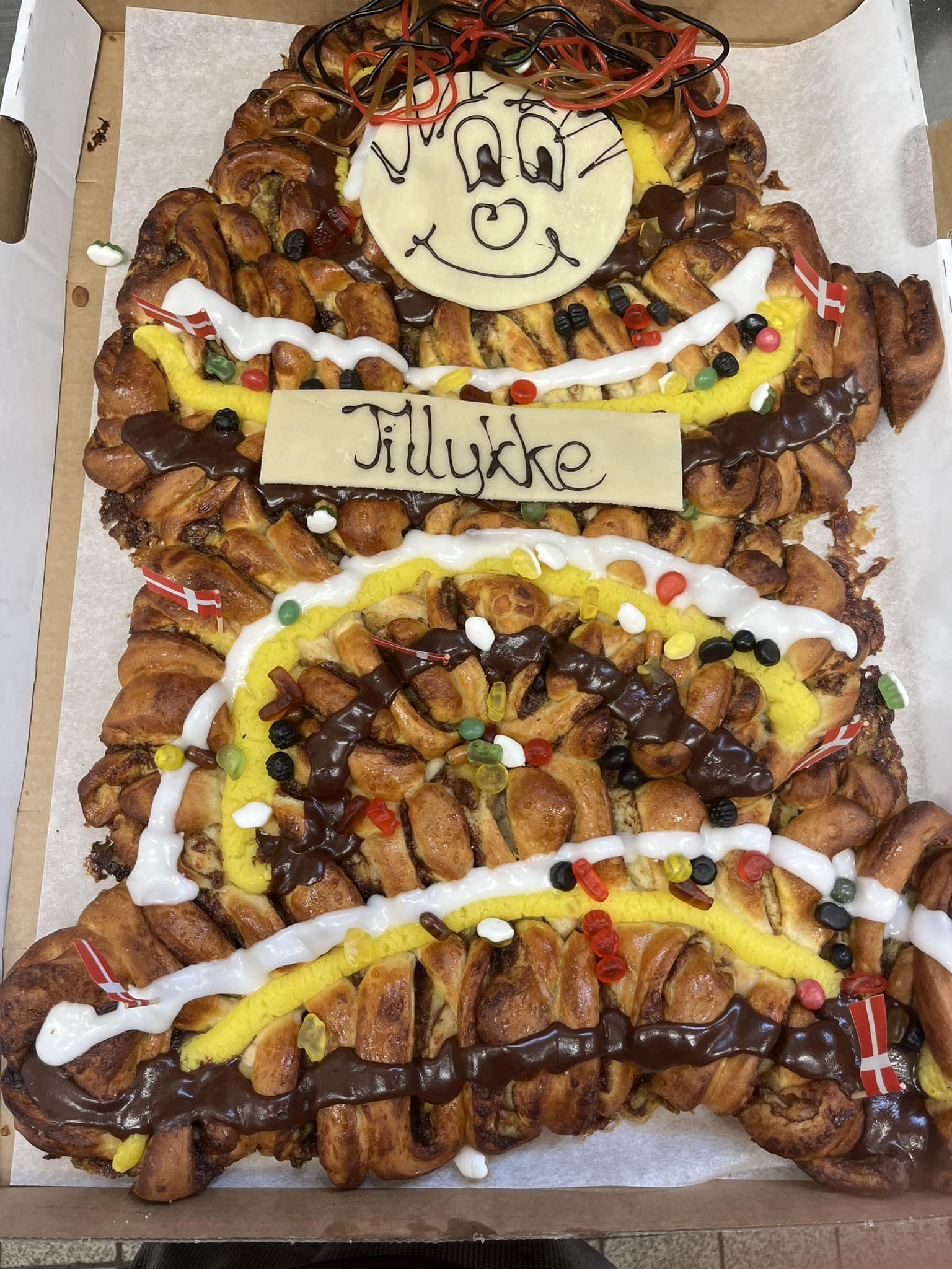 Wienerbrød med vaniljecreme. Pyntet med hvid glasur